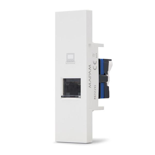 Il modulo garantisce una connessione stabile per reti Ethernet, assicurando una trasmissione dati efficiente. La struttura modulare consente un’installazione semplice e sicura nelle comuni scatole da incasso.