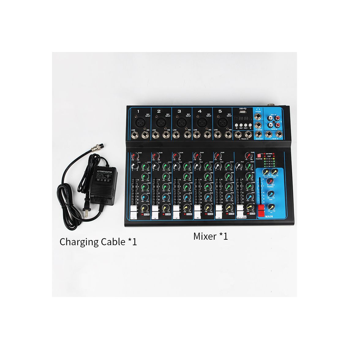 - Built-in 48V phantom power for condenser microphones.