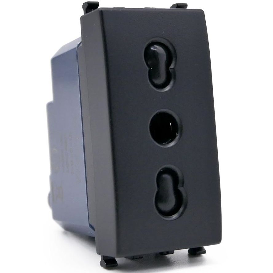 Bivalent 16A 250V black socket compatible with Vimar Arké