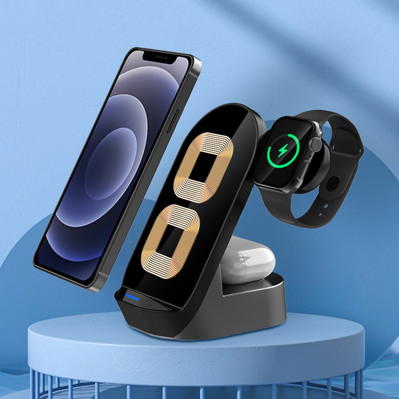 - Ricarica wireless 3 in 1 per smartphone, smartwatch e auricolari