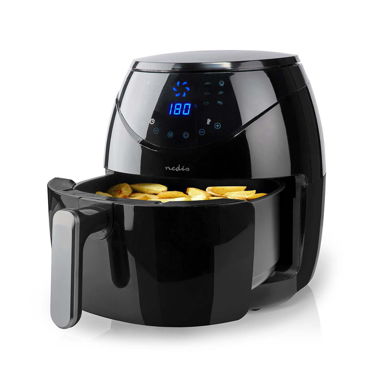 La friggitrice ad aria calda è dotata di un pannello di controllo digitale con tasti a sfioramento e uno schermo LCD. In questo modo è possibile impostare facilmente la temperatura da 80 ° a 200 ° C e impostare il tempo di cottura fino a 60 minuti. La temperatura e il tempo di cottura residuo sono facili da leggere sul display. Inoltre, è dotata di 12 programmi di cottura pre-programmati.