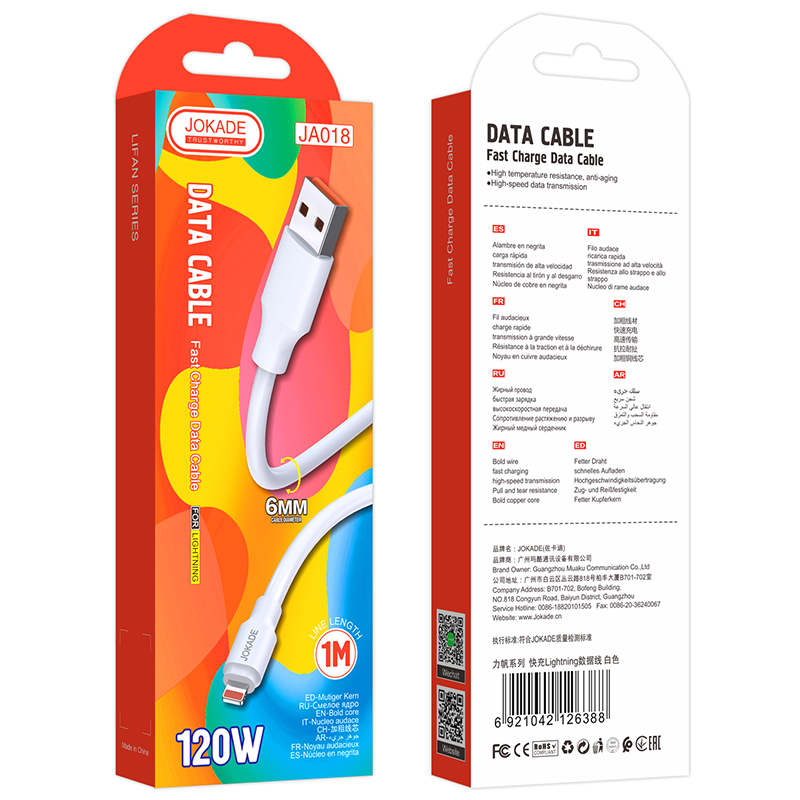 Cavo per ricarica e sincronizzazione bianco 1m 6A 120W USB Lightning